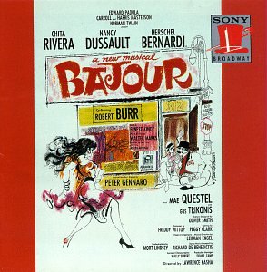 While Stephen Sondheim's Anyone Can Whistle went on to achieve cult status, one of the most curious failures of 1964 was Bajour, a show about gypsies bilking gullible Caucasians that starred Chita Rivera, Herschel Bernardi, and Nancy Dussault. Soon after Bajour opened on Broadway to less than enthusiastic reviews, it changed its marketing materials from the pre-opening poster art to something that might help boost sales of the original cast recording (which arrived in stores just before Christmas).