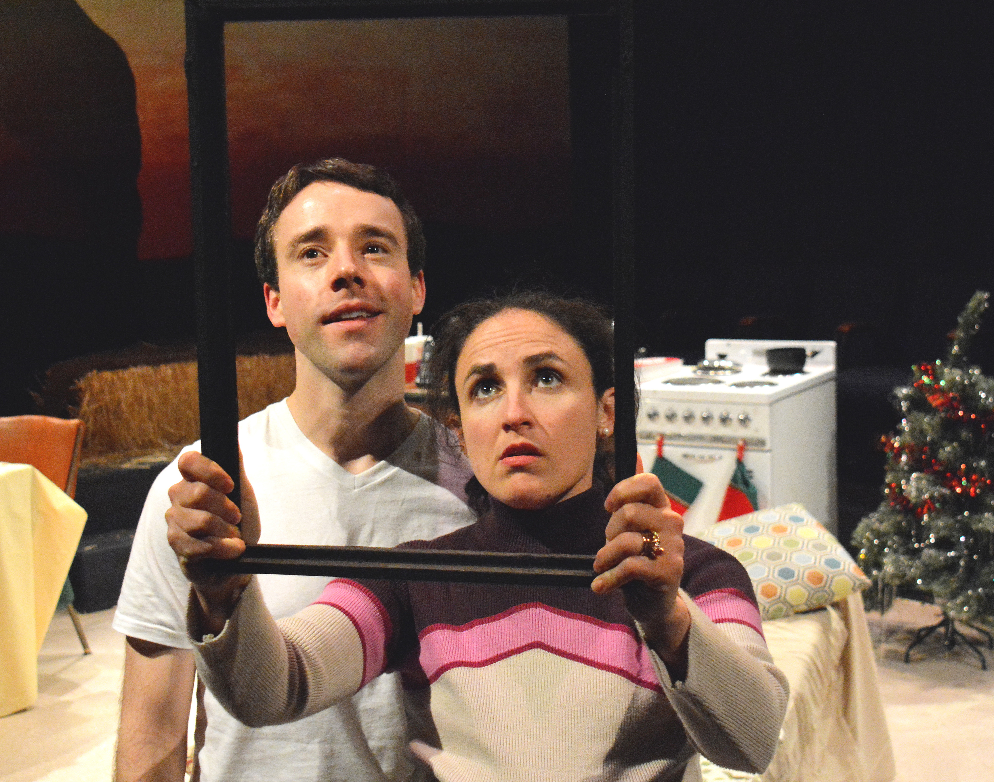 Goofy naivete may have a great deal of charm, but it also comes loaded with liabilities. These became increasingly apparent in Sarah Ruhl's frail 2003 play entitled Late: A Cowboy Song That Knows No Gender (which is currently being performed at the Custom Made Theatre in a production directed by Ariel Craft). Working on a unit set designed by Erik LaDue, Ruhl's drama revolves around three unworldly and curiously immature Pennsylvanians who have known each other since the second grade.Crick (Brian Martin) has grown into an idealistic slacker with no marketable job skills. His tearful sentimentality can reduce him to a state of weepy-eyed paralysis while watching reruns of 1946's It's A Wonderful Life on television. A handsome man-child who has never been exposed to much of anything outside his comfort zone, Crick has been living off the woman who was his grade school sweetheart and who (thankfully) has a job. When necessity forces Crick to get a job of his own, he interviews to become a security guard at a local museum so that he can spend time looking at the paintings in its collection. He gets fired for one of the most lame-brained reasons imaginable.