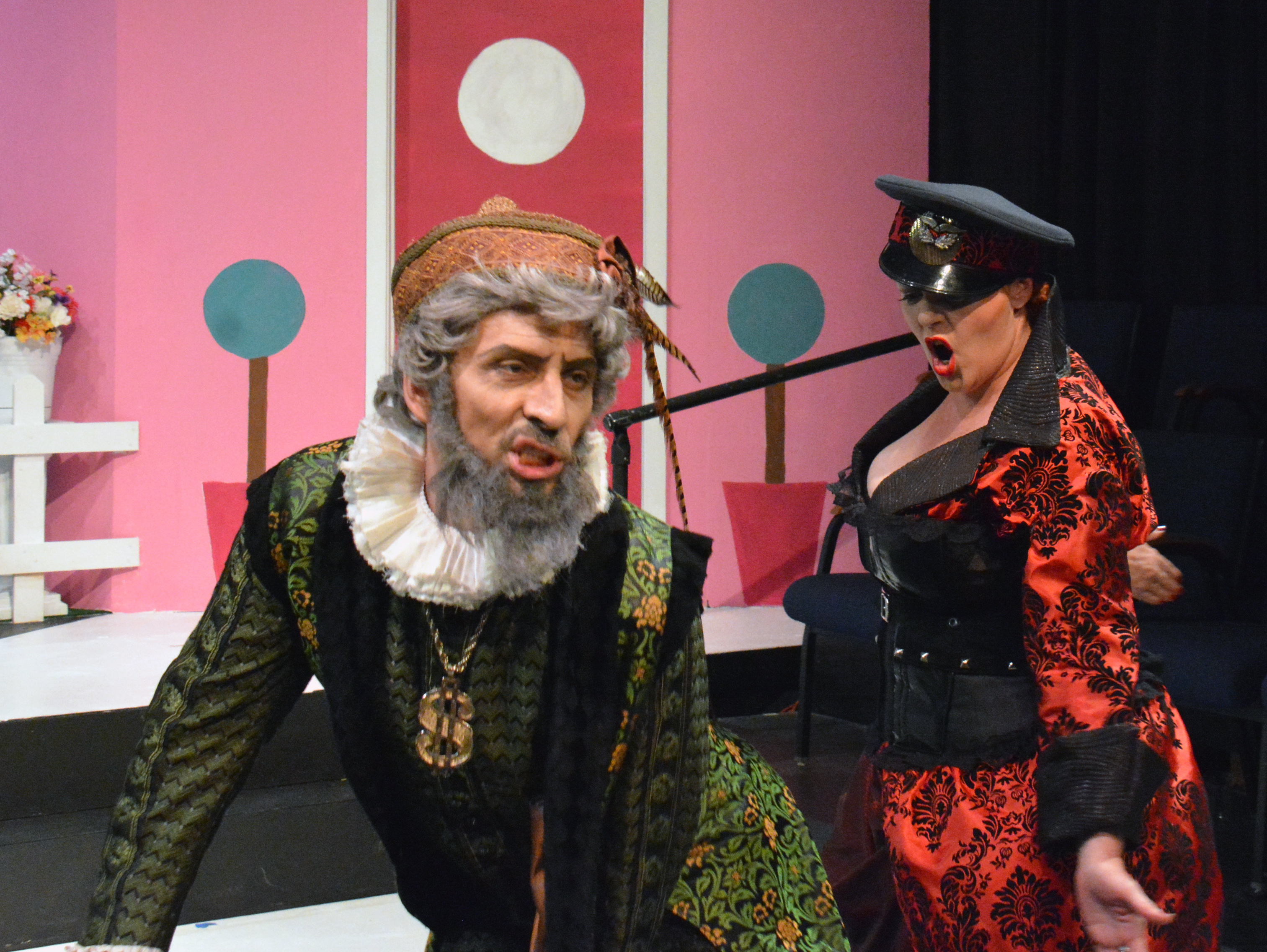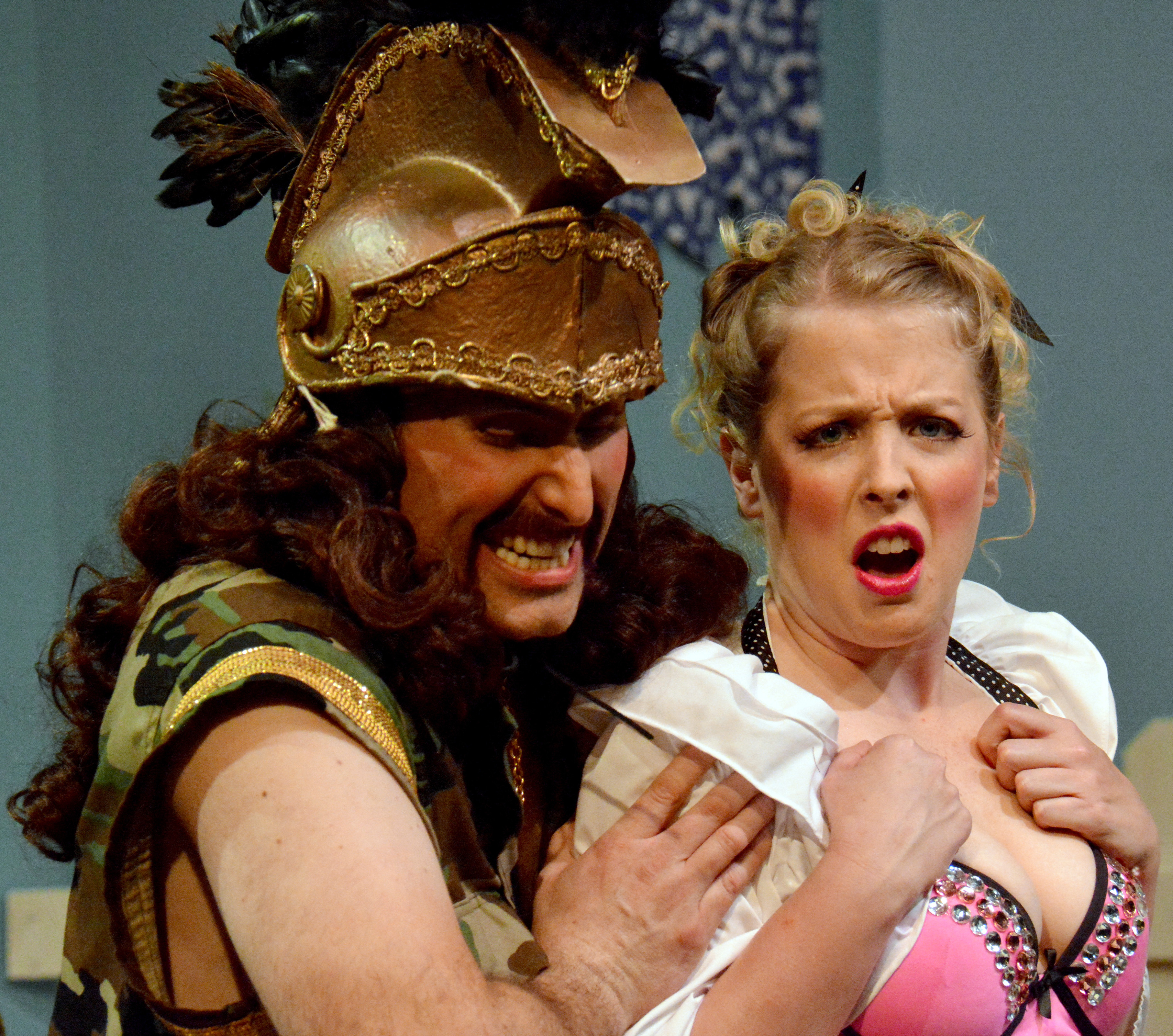 | Climax (Catherine Leudtke) and Dexter (Alan Coyne) in a scene from The Braggart Soldier, or Major Blowhard ((Photo by: Jay Yamada) |