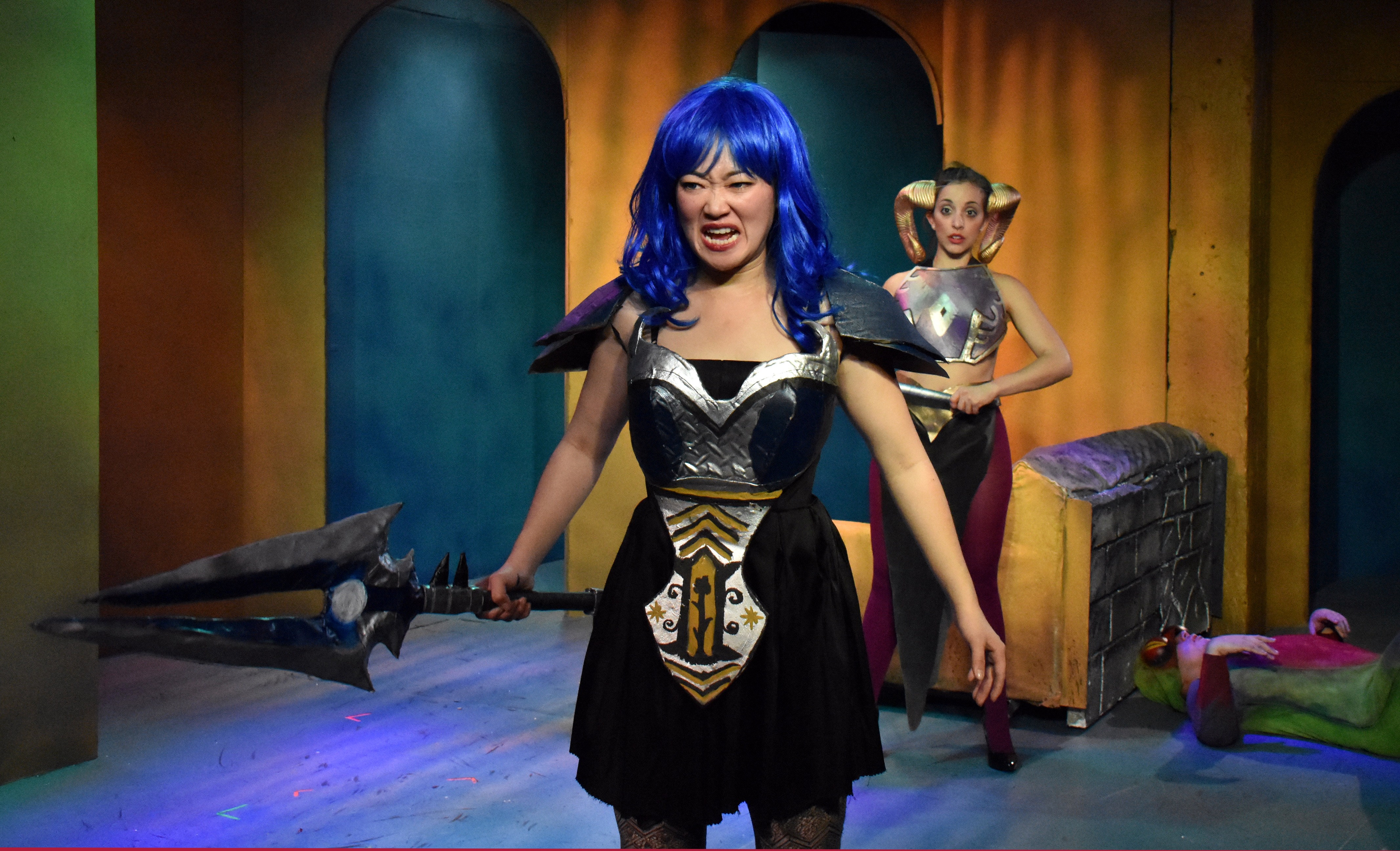 | Evie (Monica Ho) dresses as her avatar as Kitty (Laura Espino) looks on in a scene from In Love and Warcraft (Photo by: Jay Yamada) |