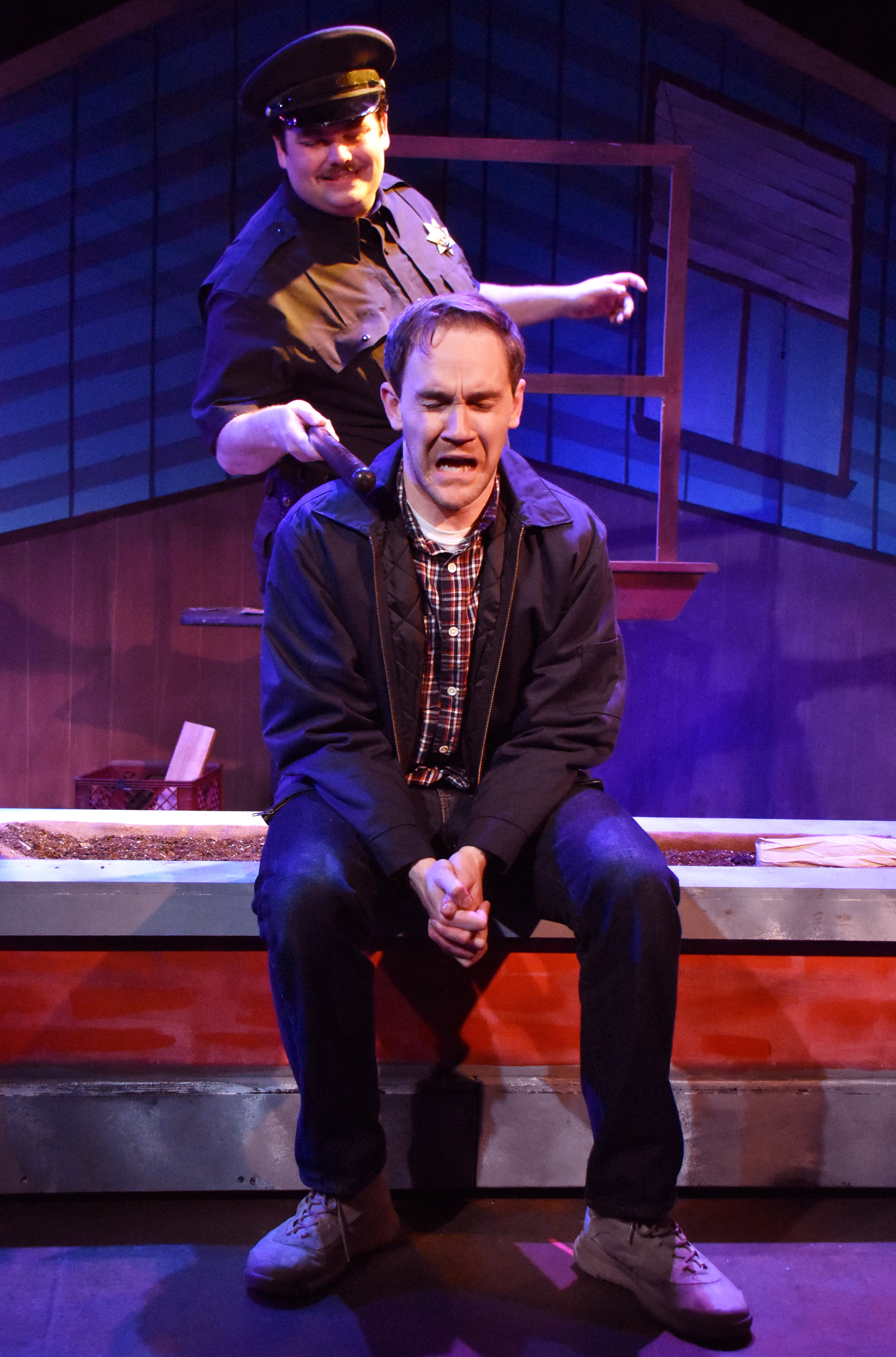 | Ted Zoland (Cop) and Justin Gillman (Mechanic)in a scene from Middletown (Photo by: Jay Yamada) |